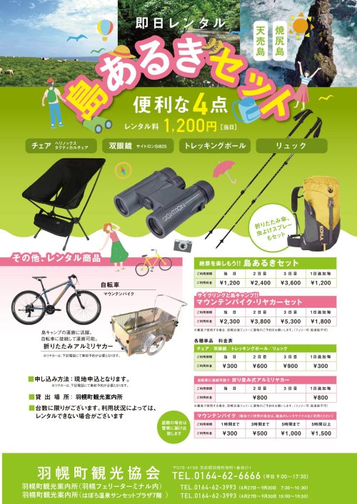 羽幌町観光案内所でアウトドアグッズのレンタルを始めました。