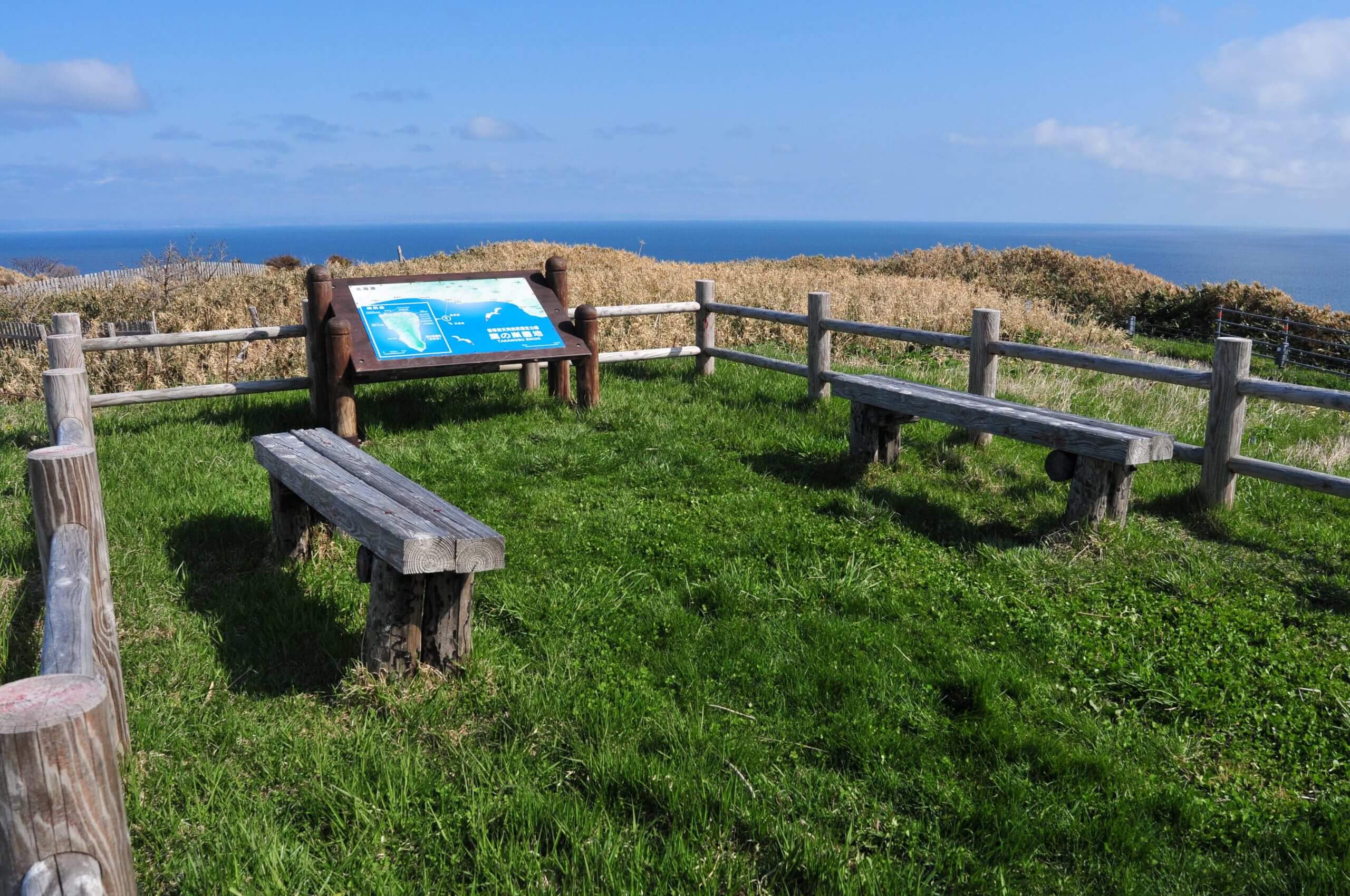 島の西南部の岬に広がる草原で、さえぎるものは何もない開放的な空間です。目の前には約3.5キロ離れた天売島、東は天塩山系が連なり、南に暑寒別岳と雄冬岬の海岸線が走っています。そして北は、利尻富士が蜃気楼のように水平線に揺れるなど、日本海を見渡すことができ、記念撮影の名所になっています。また、この付近は英語教師第1号として日本史にも登場するラナルド・マクドナルドが上陸した地と言われています。
